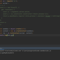 #Node.JS沙箱绕过# 继续看vm这个模块,我们前面通过this这个外部对象中的属性,来执行了一些隔离环境外的函数。 那么,我们改一下代码,让上下文中不存在this也不存在其他对象,代码如......