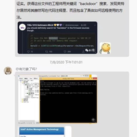 这几天关于intel泄露的文件中包含backdoor相关字眼的事件关注量很大,有一些吃瓜群众认为这就是芯片留后门的铁证(见图)。 安天实验室对此进行了分析: