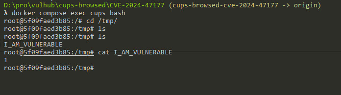 昨晚遇到的cups-browsed CVE-2024-47177复现的问题,在@满秋. 的帮助下成功解决了,原因就是容器里没有启动dbus服务,安装并运行一下就好了。Vulhub环境已经上线: ......